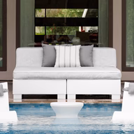 A stylish 64″×64″ square sunbed with backrest cushion, built for in-pool (up to 10″ deep) or deck use. UV-stable resin frame, quick-dry cushions, and premium outdoor durability.