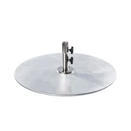 Stackable galvanized steel umbrella base with adjustable weight (via plate stacking), multiple stem heights, and a modern matte silver finish. Durable, rust-resistant, and ideal for center-pole umbrellas.