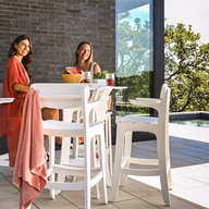 The Haven Hightop Chair is a bar-height outdoor chair combining ergonomic comfort and all-weather durability. It has a curved backrest and footrest, which support good posture and make sitting for longer periods more comfortable.