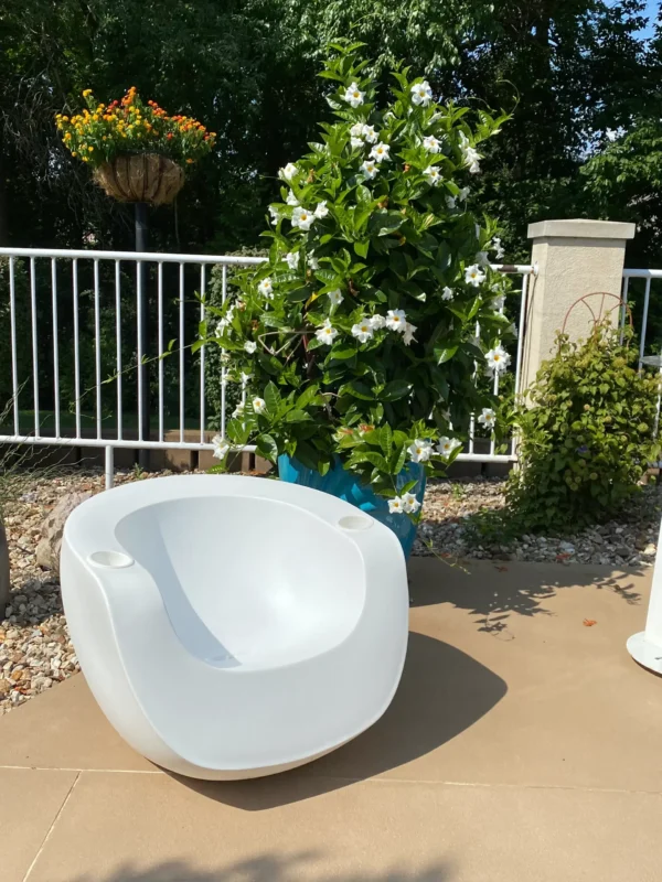 Crafted from 100% recyclable rotomolded polyethylene, the SPLASH Series Moon Chair offers more than just its bold design. Capable of withstanding everyday use and various environmental conditions, its true allure rests in durability and exceptional comfort. The ergonomic contours of the molded seat cradle your body in pure comfort, while the smooth surface adds a touch of tactile pleasure. Let yourself be transported to a realm of futuristic tranquility and rediscover the joy of unwinding in style.
