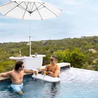 A stylish swim-up bar and beverage station: includes floating tabletop, dual storage bins, built-in bottle openers, umbrella compatibility, and made from durable UV-rated resin. Perfect for pool ledges or lounging by the water.