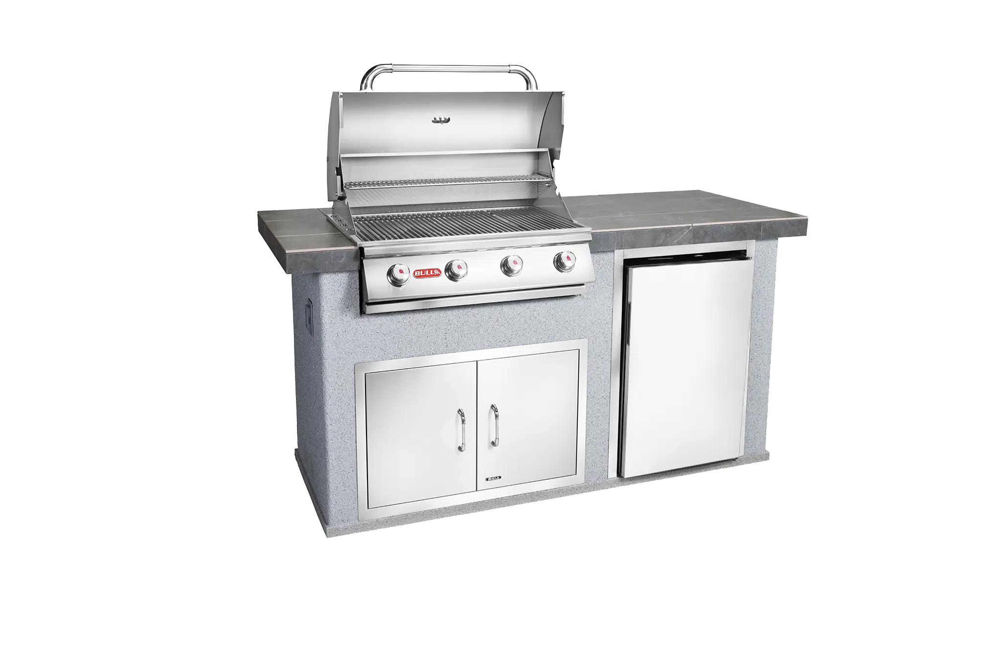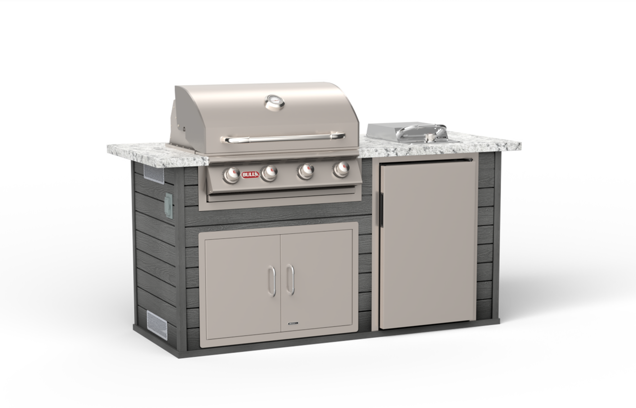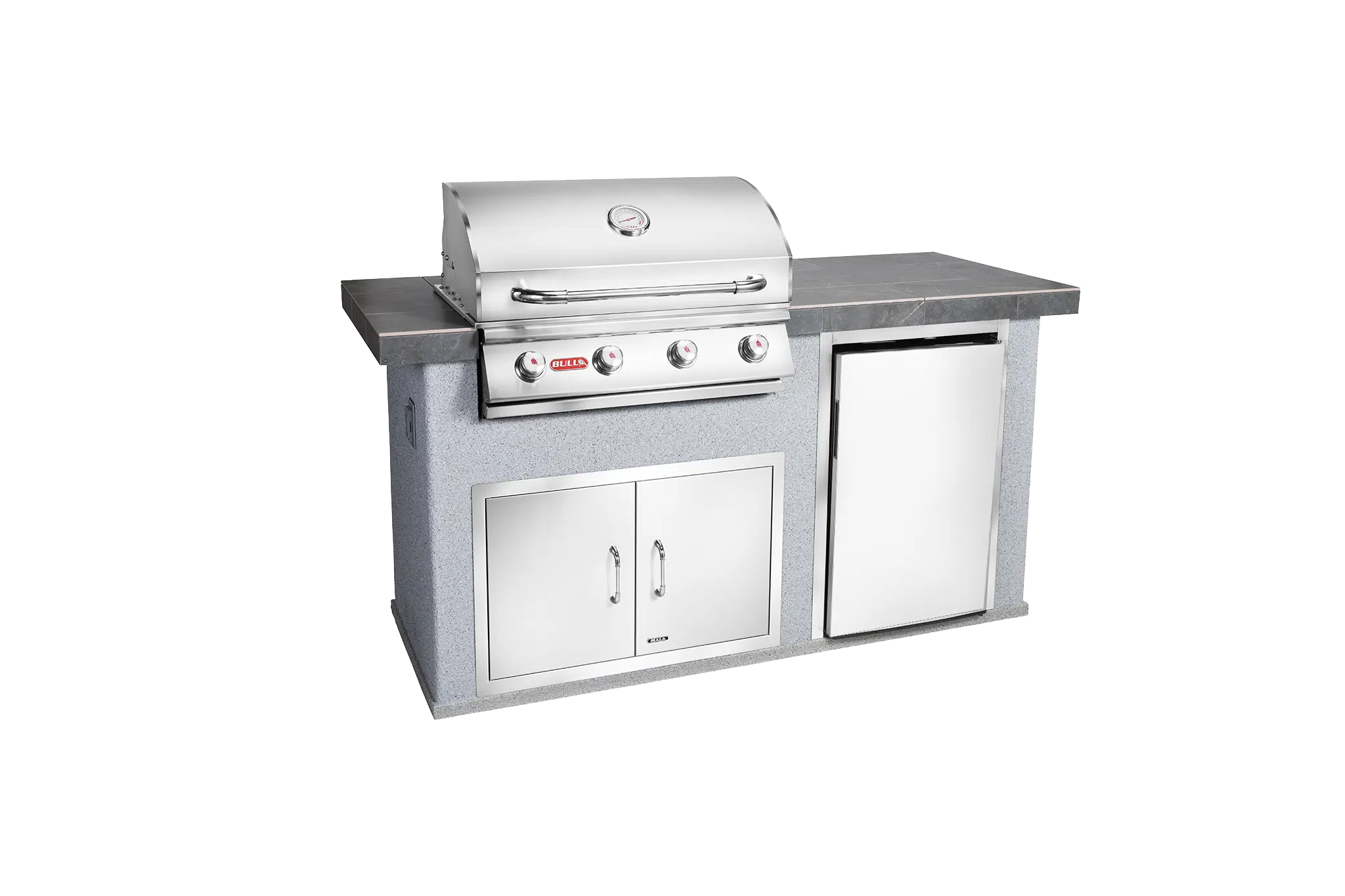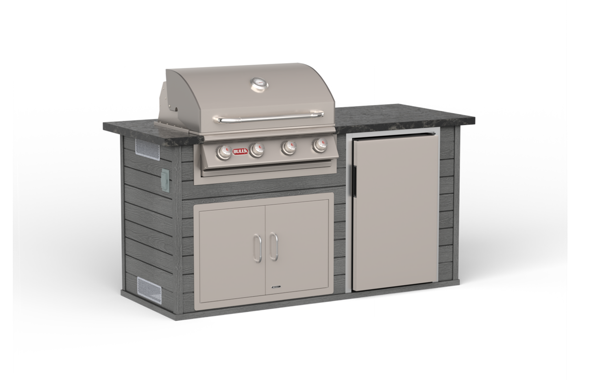The Power Q Outdoor Island Kitchen is a wonderful addition to any smaller backyard or patio for the ultimate grill master. It features a stainless steel Angus gas grill, and refrigerator and provides ample counter space that is great for preparing your favorite recipes.