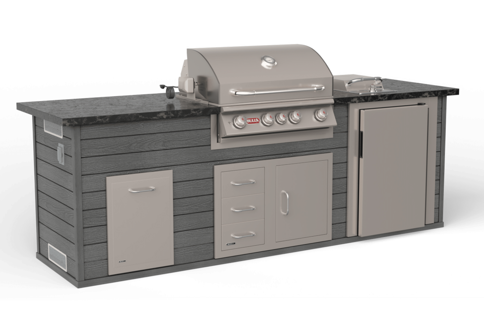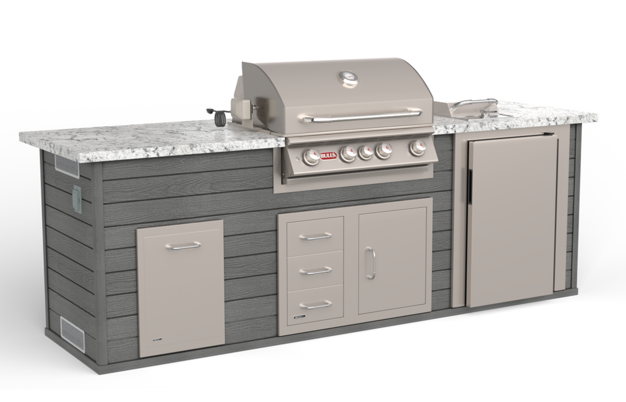 The Premier Q is one of the newest offerings in our outdoor kitchen line up. It comes standard with the Angus Grill Head, a Premium Outdoor Rated Refrigerator, Drop-in Single Side Burner, Double Trash/ Recycling Drawer, and the 30-inch Door Drawer Combo. The Premier Q has everything you need to build the perfect outdoor living space and become the envy of your neighborhood.
