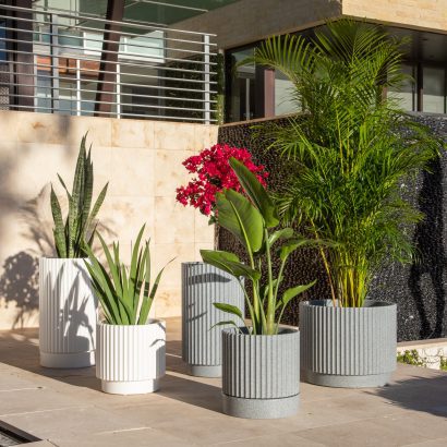 SPLASH Series Ripple Planters are fully customizable. Available in a variety of colors, you’ll create an engaging assortment of varying widths and heights, to elegantly transform any space into a lush oasis. In high traffic areas, SPLASH Series Ripple Planters can serve as stylish buffers, directing traffic flow and defining distinct spaces. Create a stunning column feature using the stackable planters as a base, stack to your desired height and top it off with Tenjam’s SPLASH Series Ripple Side Table for a polished, modern and cohesive look.