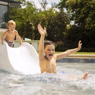 The Signature Slide is a beautifully designed pool slide made for kids that adds playful elegance to your pool deck, tanning ledge, or patio. Crafted to work in water depths up to 12 inches, it offers safe, splash-filled fun without compromising on style. The slide features slip-resistant steps and rounded edges to reduce risks, plus contoured sides for secure grip as children climb.