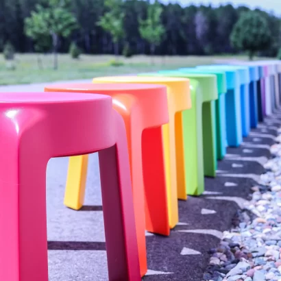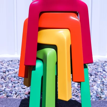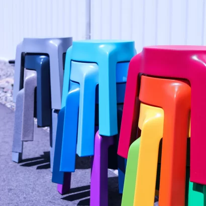 Sit, stack, store. Easy to carry, easy to clean, indoor/outdoor. A lightweight stool designed to be easy to carry with one hand