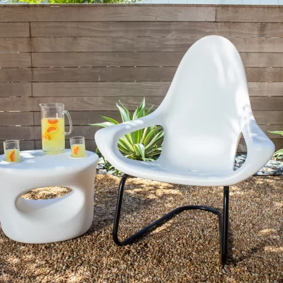 The combination of the ergonomic contouring of the seat and the slight bounce designed into the base give you the most comfortable outdoor chair in the world. The seat is made with polyethylene material for supreme impact strength and low maintenance. The base is made with heavy gauge stainless steel finished with an outdoor rated powder coating. Woosah is designed to give you a very slight and soothing bounce movement that everyone finds to be ultra-relaxing. Bring on the sun, sand, snow, salt, and rain…this chair can take it.